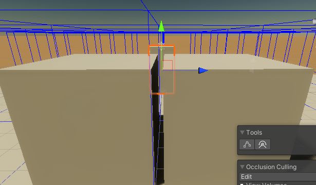 Staticにチェックをいれたオブジェクトの狭い隙間からみると、動的オブジェクトが表示されなくなるのがわかります。