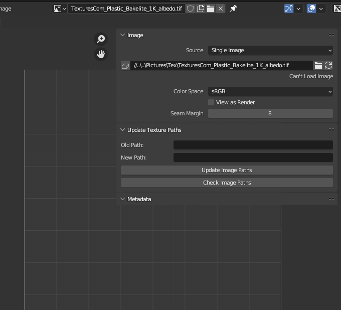 UVエディタでImageタブをクリックし「Image」パネルを表示すると、選択中の画像のパスが表示されます。