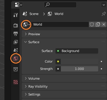Worldプロパティで地球のアイコンをクリックしてメニューを開きます。
