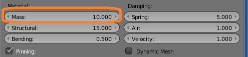 オブジェクトモードに戻し、Physicsボタンで、Pinningにチェックをいれ、その下で、今設定した頂点グループを選択します。