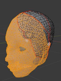 そこで、適当にシームを付けて、顔の部分の面を選択します。